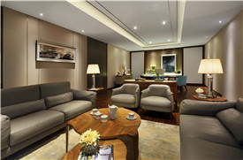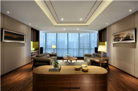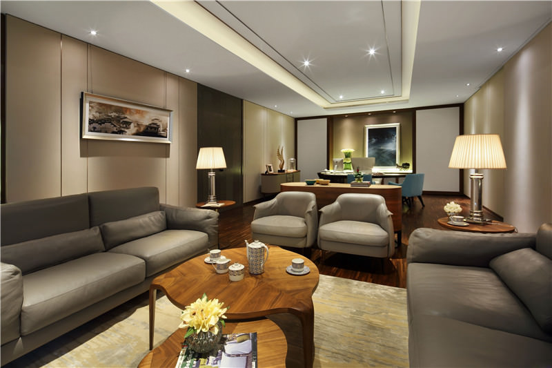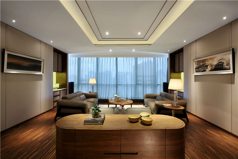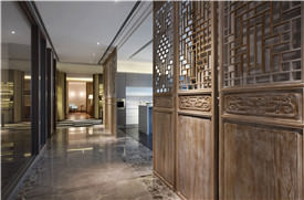客房和公共領域,配上當代的優雅家具與魅力四射的色調,確保無與倫比的豪華體驗。天花懸掛的水晶呈現的曲線形態,打造出別于一般的枝形吊燈。現代風格的藝術與配件注入了中華元素,所選的家具體現浙江當地的文化色彩。