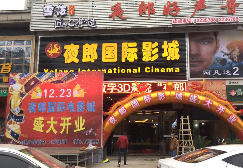 2015年12月23日,赫章县首家3D数字电影院夜郎国际影城建成运营,结束赫章县无高档影院的历史,也开启赫章县电影市场的新历程,标志着赫章县广播电影电视事业产业发展迈上一个新的水平,将进一步丰富全县人民的精神文化生活。赫章县首家高品质数字化影院夜郎国际影城位于夜郎广场,总投资500多万元,可一次性容纳观众200多人,放映设备达到国际先进水平,可为观众带来震撼的音响效果和极具冲击力的视觉特效。